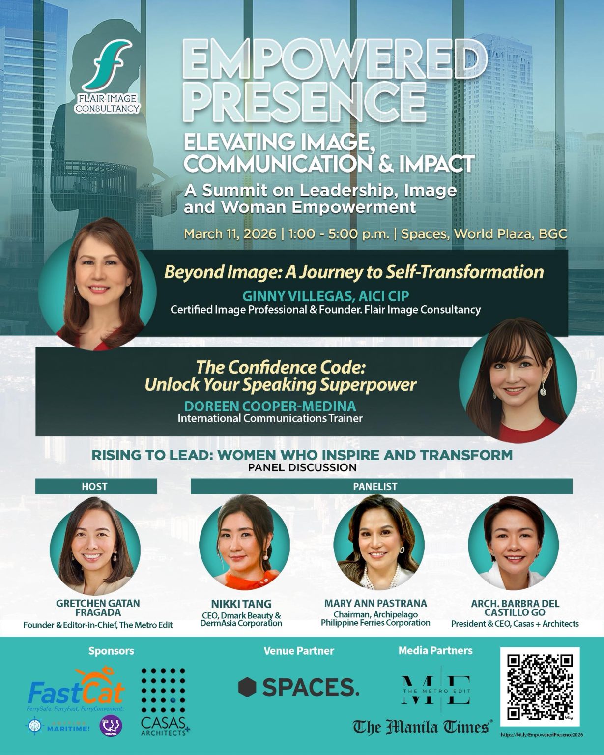 Leading Her Way is a Summit on Leadership, Image & Womanhood in celebration of international women’s month on March 20, 2024, 2:00-6:00 p.m. at Spaces. BGC, which is open to everyone aspiring for leadership and professional development. Learn from women leaders and experts how to achieve career and life goals in line with your values and wellbeing.